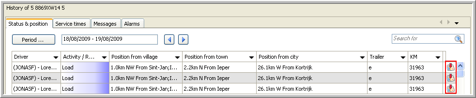 This tab page gives you an overview of the activities executed with the vehicle selected in the Real-time information part.