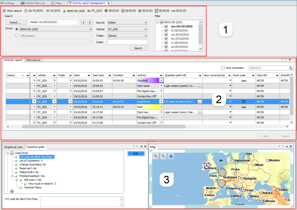 This part of the Activity Management feature provides a detailed overview of your drivers' activities. In this module, it is possible to modify, add and delete activities.