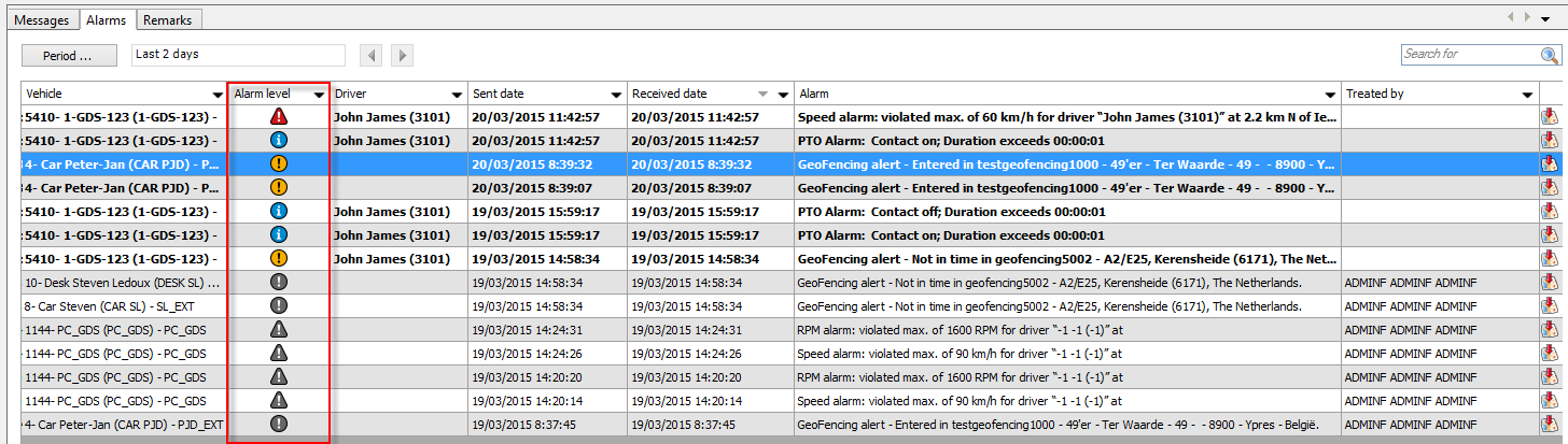 Every alarm can be treated and edited by users who follow up this vehicle.