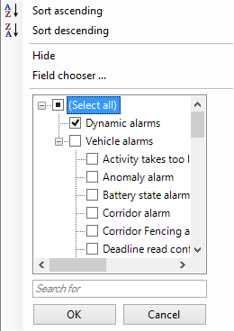 Use the Alarm type column to filter out dynamic or vehicle alarms: