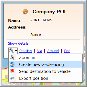 § By clicking Create GeoFencing in the drop-down list next to the flag and then on the map.