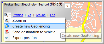Search for the POI on the map you want to create a GeoFencing object for and click the Create new GeoFencing button: