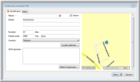 Click on the Show details button to open the "Edit company POI" window. Edit the information and click Save to accept the modifications or Cancel to restore the last saved values.