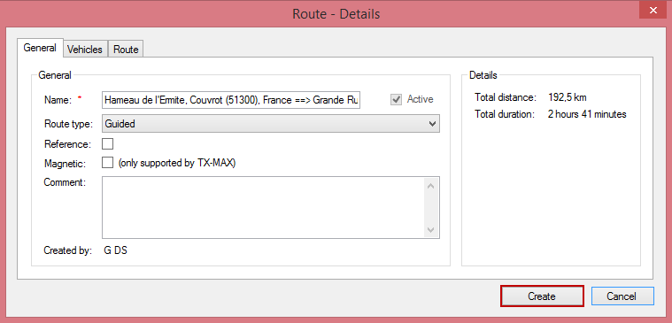 · Set the route as a "Reference" route: The ideal route, for instance as it is was driven by an experienced driver (Cf. Filter routes).