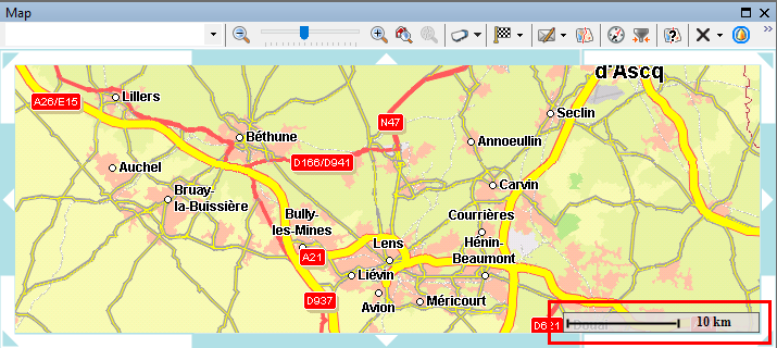 The scale at the bottom right of the map allows a more accurate estimation of distances on the map.