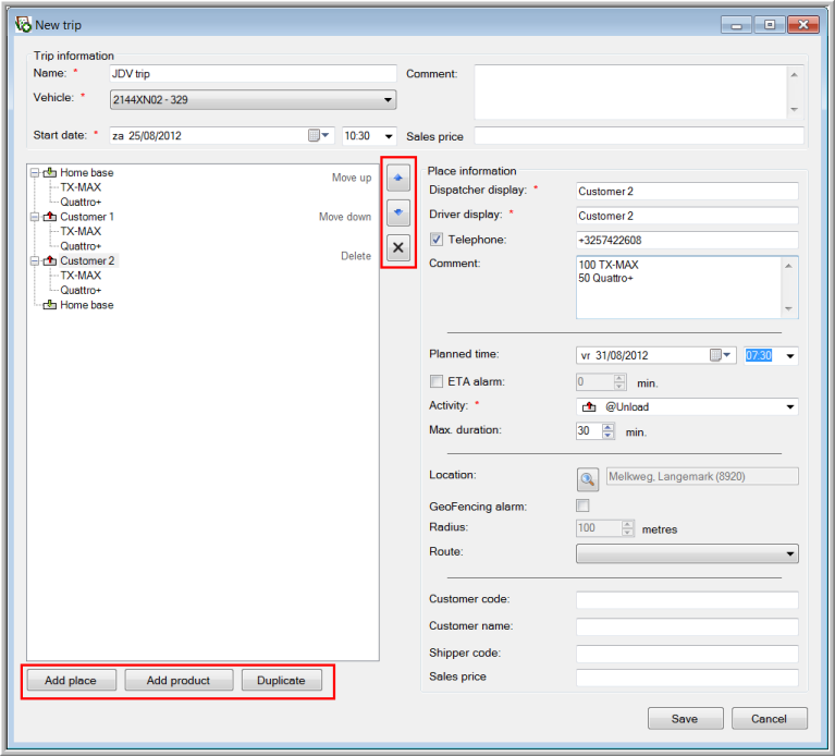 Depending on the on-board computer and its instruction set, you can create planning items with a trip or a place as the top level.