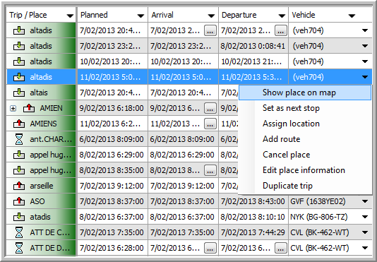 This screen gives you an overview of all planning items of the vehicles you follow up.