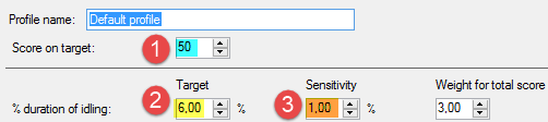 Set the target value, the sensitivity and the weight for total score for every parameter: