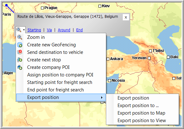 When active, you can export the vehicle / trailer from the "Vehicle follow-up" and the "Map" module to the configured URL.