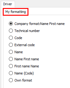 As from TX-CONNECT version 11.39, every user can customize how the driver names are displayed in their session. You can configure the formatting of the driver name in the Driver tab page in Settings > Management > Formatting.