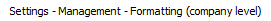When a specific user right (Formatting (company level)) is active, you can set the company default formatting and the formatting for the current user: