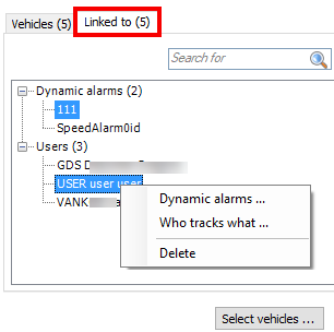 Right-click on an item in the "Linked to" tab page to view the context menu options: