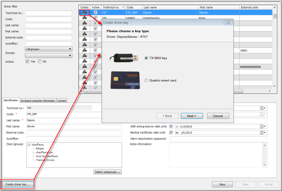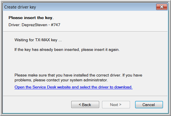 Note that the TX-MAX driver must be installed to create a key. If not, the wizard will help you do so.