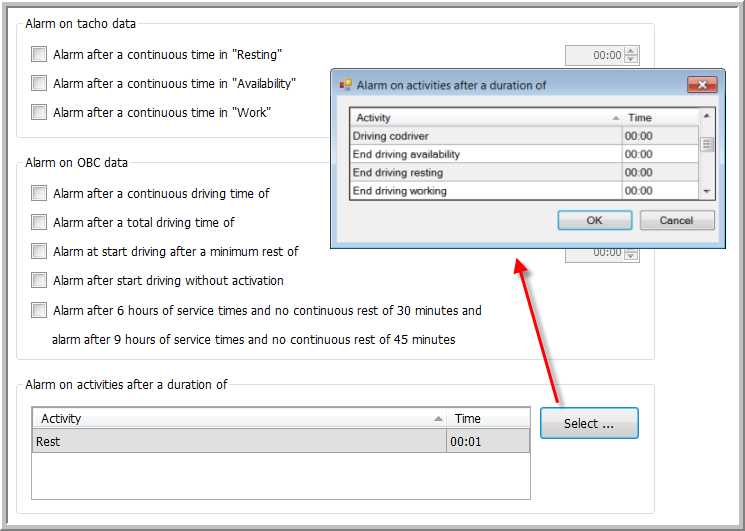 Note: As from TX-CONNECT version 11.21, when configuring the following driving and service times alarms in TX-CONNECT, the alarm will also be sent to the on-board computer.
