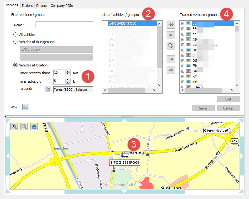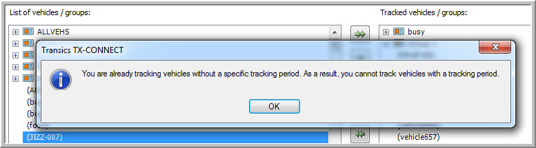 When you assign a group of vehicles / trailers for a specific period, the items will be shown separately in the tracked vehicles / trailers list.