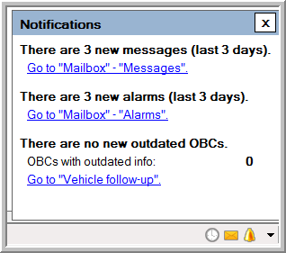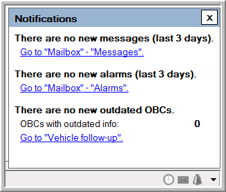 There are new unread messages, new untreated alarms and new outdated vehicles. Note: Unread messages and untreated alarms are only considered "New" if they are less than 3 days old. |