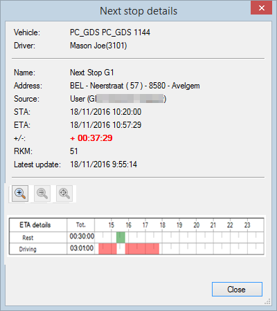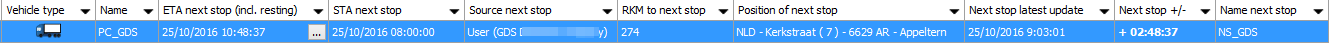 A next stop is a place or position where the driver has to go after the current (planned) activity. In this way, the estimated and scheduled time of arrival can be calculated at the home base.