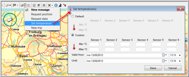 It is possible to set temperature zones with a limited validity per vehicle or trailer.