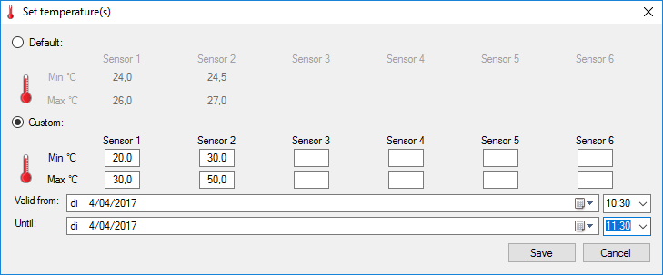 Custom: temperature zones with a limited validity.