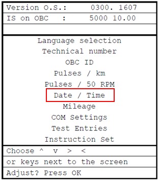 Next, click on Get GPS Time at the bottom. The OBC will now retrieve the date and time from the received GPS info. Click on OK to confirm and close the menu.