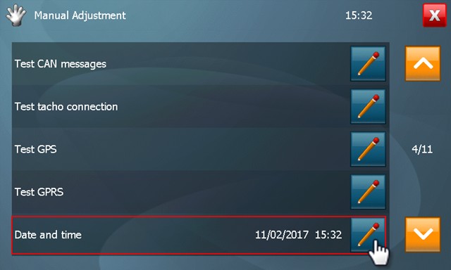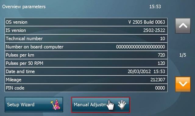 Use a manager key or SD card to access the manager menu (cf. Create manager key). Click on Manual Adjustment. |