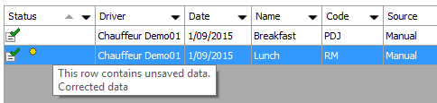 The first column of the table (the Status column) contains status indicators which convey a certain message for the information line. These are the possible indicators:
