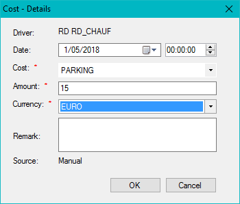 Edit ... : Edit the selected cost. Note: You are not allowed to edit original data. To edit a cost, select Source: Edited in the selection area. |