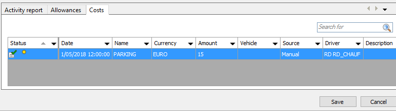 The costs table contains a detailed overview of all costs for the selection you made in the search area.