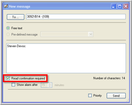 When you send a message to a vehicle, the read confirmation will be required by default.
