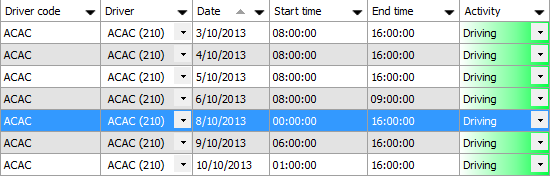 Podsumowanie w górnej części obszaru wyboru zawiera przegląd czynności kierowcy w czasie wybranego okresu. Obok ikony