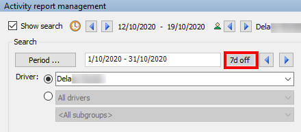Pole wyszukiwania, w którym można zdefiniować okres – kierowcę – źródło – pojazd – naczepę – zamówienie. Uwaga: Okres nie może przekroczyć 31 dni.