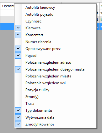 Kliknij prawym przyciskiem myszy górny pasek kolumny, aby dodać lub usunąć kolumny z widoku: