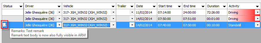 Uwaga: Począwszy od wersji 11. TX-CONNECT, wszelkie dodane uwagi mogą teraz być również przeglądane w Raporcie czynności. Przytrzymaj kursor na ikonie Uwag w kolumnie Stan, aby wyświetlić tekst uwagi w okienku pop-up.