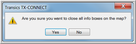 Funkcji Zamknij wszystko używa się do zamknięcia wszystkich pól informacji widocznych na mapie.