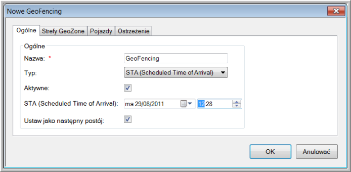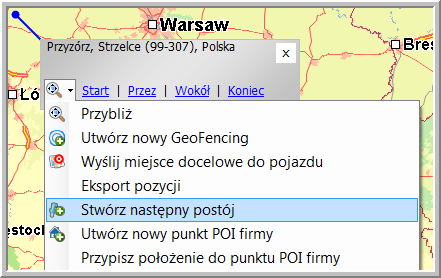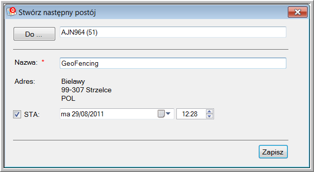 Tworząc nowy GeoFencing STA, można ustawić go jako następny postój.