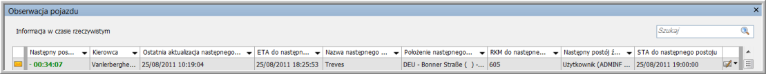 Począwszy od wersji 11.33 systemu TX-CONNECT tę kolumnę można skonfigurować, tak aby zawierała obowiązkowe odpoczynki w szacowanym czasie do przybycia.