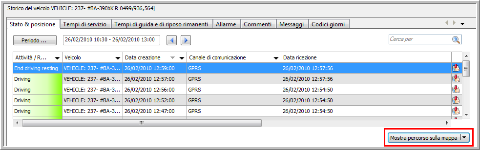 Wybierz określony okres w zakładce Status i położenie modułu „Obserwacja pojazdu”, a następnie naciśnij przycisk Pokaż trasę na mapie.