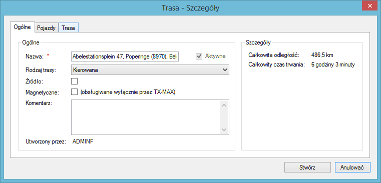 1 zmienić nazwę trasy. Dezaktywacja trasy jest możliwa tylko w oknie "Zarządzanie trasą" screen.