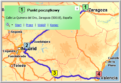 Można utworzyć i obliczyć trasę pomiędzy dwoma adresami na mapie.