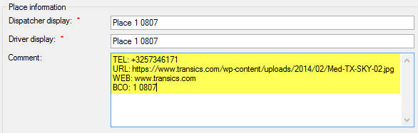Dodatkowe opcje miejsca można aktywować w TX-SMART poprzez wstawienie określonych „tagów” w wierszach komentarza Miejsca w TX-CONNECT: |