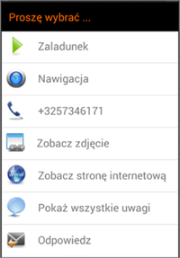 Do wierszy komentarza miejsca („WEB:xxx” w wierszu komentarza) można też dodać łącze do strony sieci Web. W efekcie na liście działań dla danego zlecenia w TX-SMART zostanie udostępniona opcja Zobacz stronę internetową. Aby przejść do określonej lokalizacji, aplikacja TX-SMART korzysta z przeglądarki urządzenia.