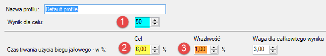 Ustaw wartość docelową, czułość oraz wagę dla całkowitego wyniku dla każdego parametru: