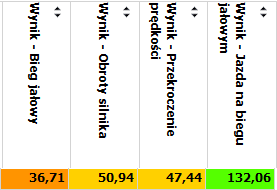 Z przykładu ECO WYDAJNOŚĆ powyżej: Np. Wynik - Bieg Jałowy = 36,71