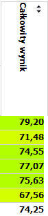 Całkowity wynik bierze pod uwagę „Wagę dla całkowitego wyniku” ustawioną w profilu raportu (zob. Ustaw profil):