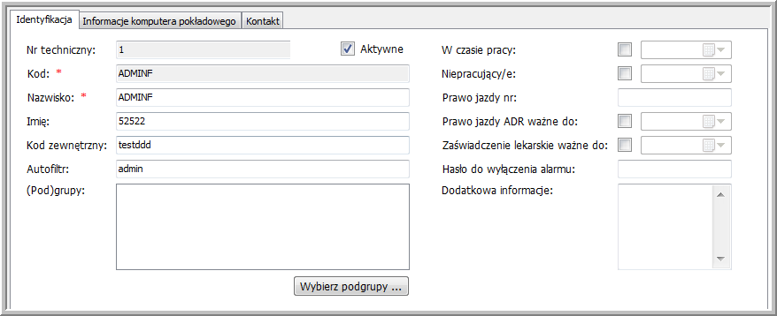 Ta zakładka zawiera wszystkie szczegółowe informacje o kierowcy.