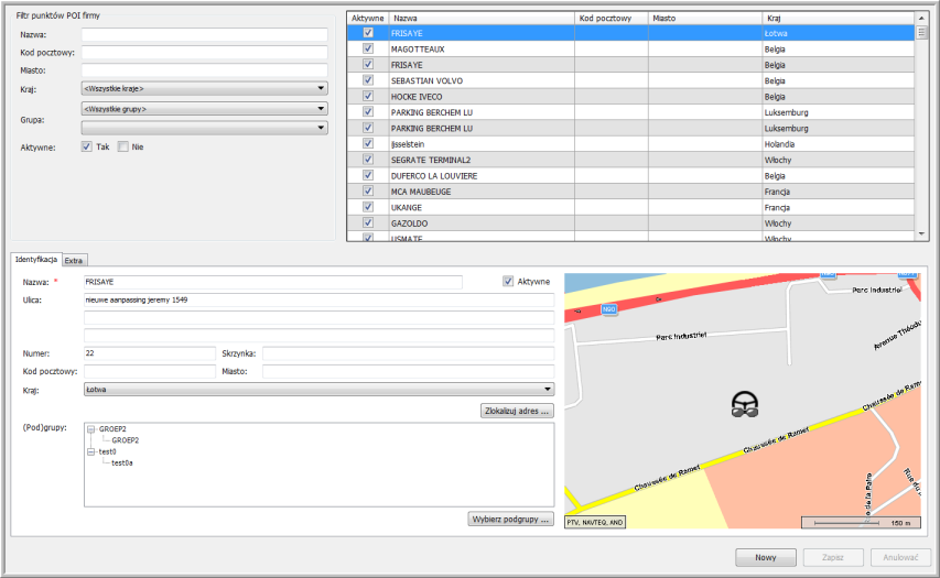W tym miejscu można tworzyć i modyfikować swoje punkty POI firmy oraz zarządzać nimi. Grupy punktów POI firmy można tworzyć w tym miejscu: Ustawienia > Zarządzanie > Grupy.