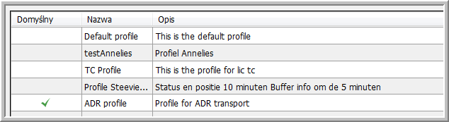 Nowo utworzone pojazdy automatycznie otrzymują profil domyślny, do czasu przypisania innego.