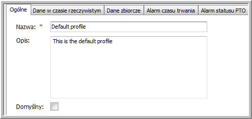 W tej zakładce można zmienić nazwę i opis profilu oraz oznaczyć profil jako domyślny. Taki domyślny profil zostanie automatycznie przypisany podczas tworzenia nowego pojazdu.