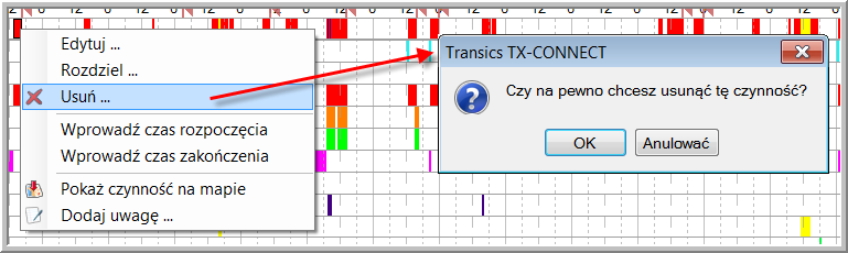 Czynność można również usunąć, klikając tę opcję na rozwijanej liście.