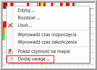 Kliknij prawym przyciskiem myszy na czynności i wybierz Dodaj uwagę.